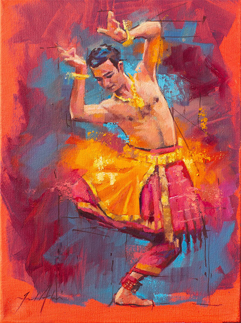 An approach to paint Sai in performance was made by Paul to Jamel Akib who he knew has enormous understanding of music and dance in his paintings. Jamel’s wife has a senior working relationship with the Royal Ballet in London and she too recognized Sai’s brilliance as a dancer.